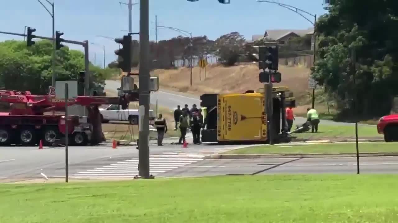 Crash In Waikele Leaves Garbage Truck On Its Side