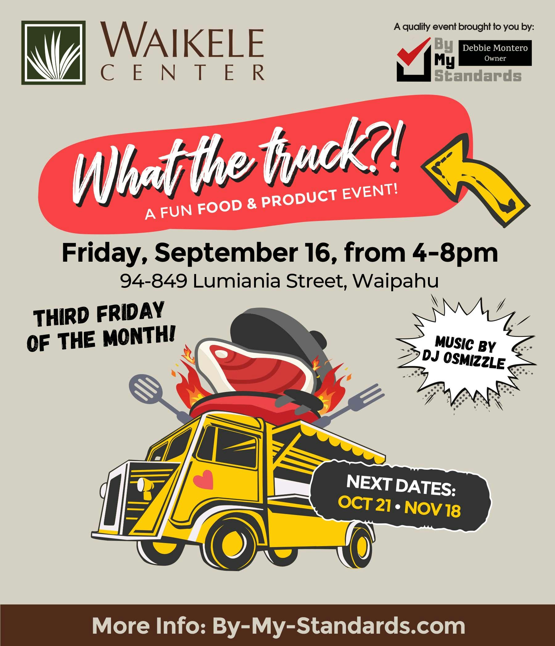 Get directions reviews and information for What The Truck. Brings 30 local vendors together for a popular monthly food truck rally like we havent seen since Eat the Street. Is a foodproduct event held on the first Friday of the month at Waikele Center which is on the Makai side of Lumiaina Street.